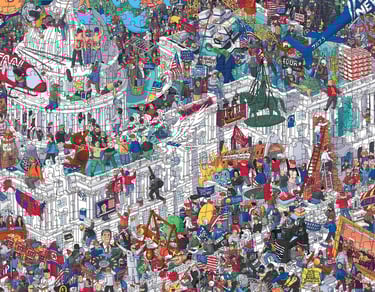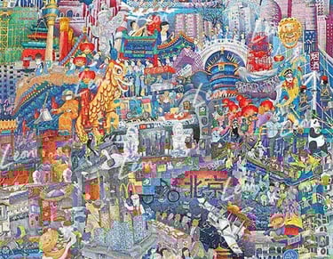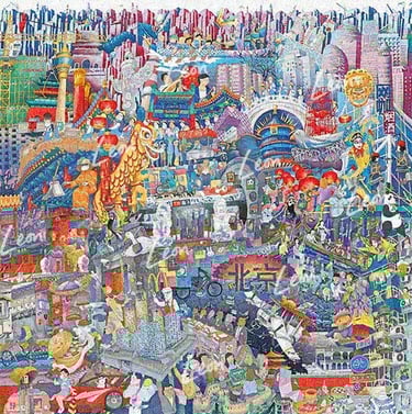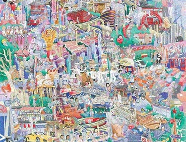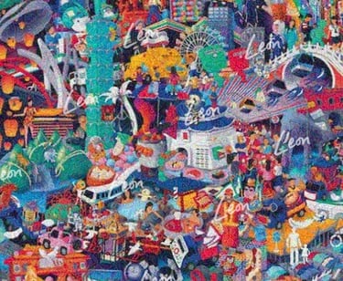 Leon's drawings are a new form of storytelling, depicting the world not chronologically or geographically, but rather as we remember it in dreams and imaginations: kaleidoscopes of interwoven memories, colliding together to form new stories and ideas. Leon’s work is complex and evocative and has been exhibited globally. To learn more about Leon, click here. To explore Leon's colliding worlds, click the images below.